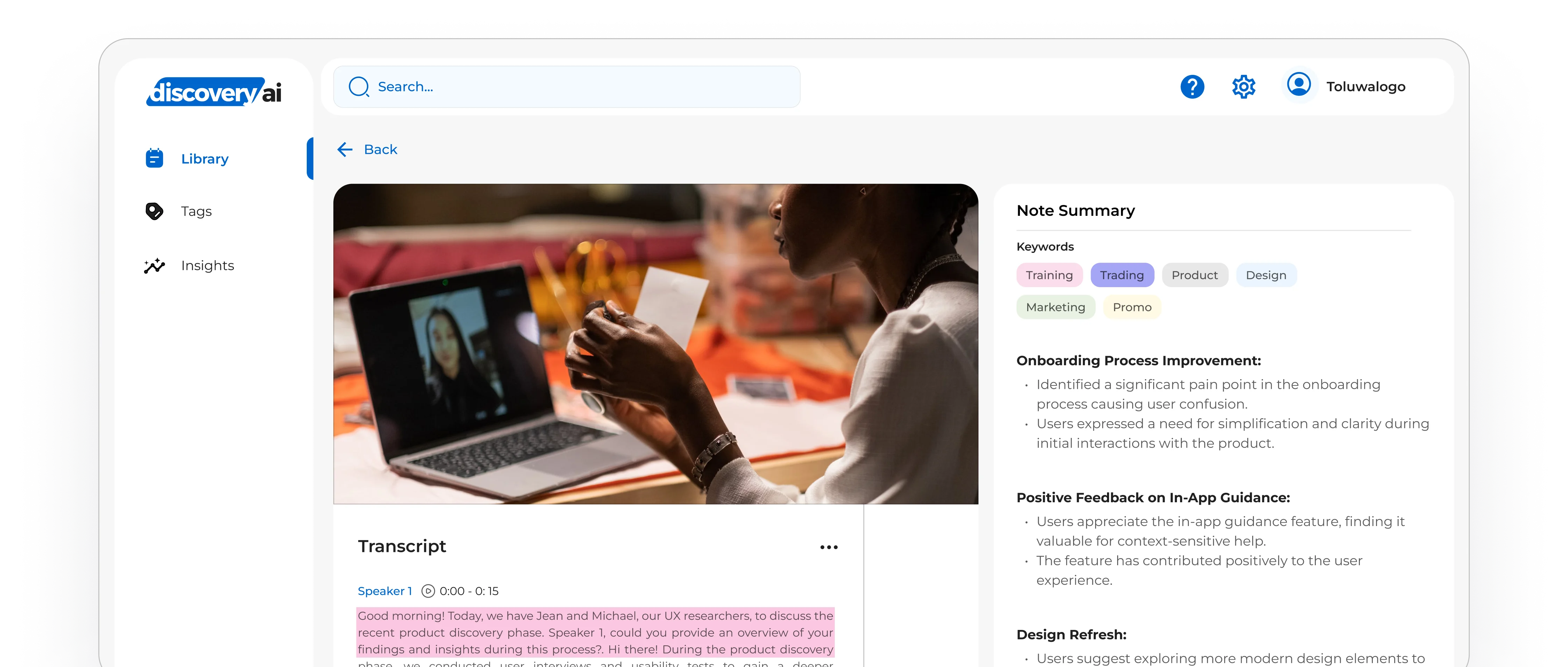 Using Discovery AI made it easier to capture insights from customer research and share customer pain points with the company.