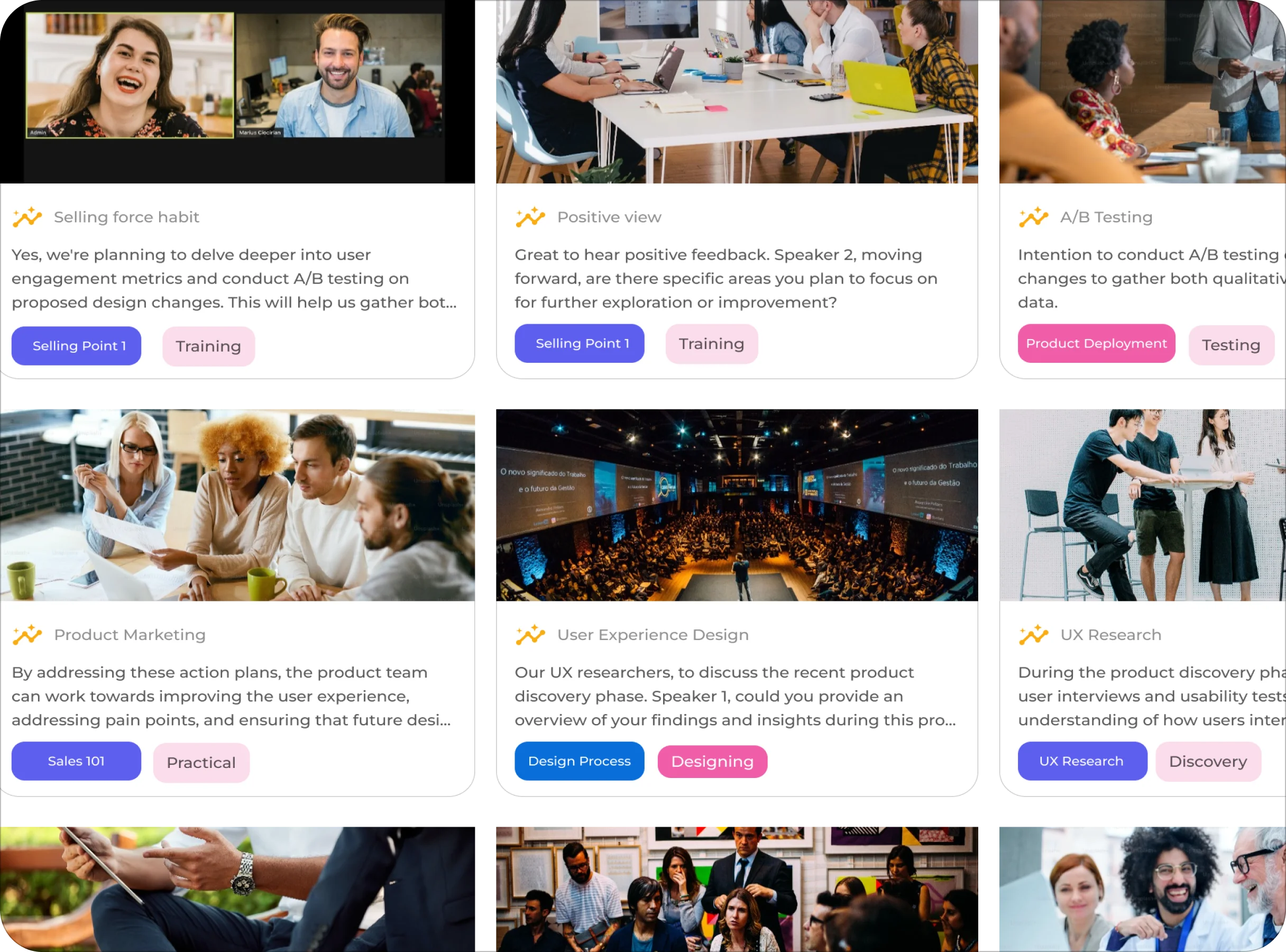 Effortlessly upload call recordings, fine-tune transcription, tag insights, and share key highlights with your team and existing tools.